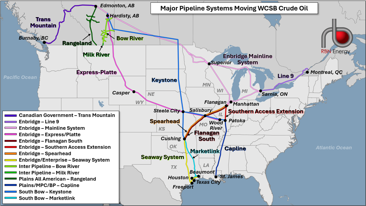 Figure 1. Major Pipeline Systems Moving WCSB Crude Oil. Source: RBN