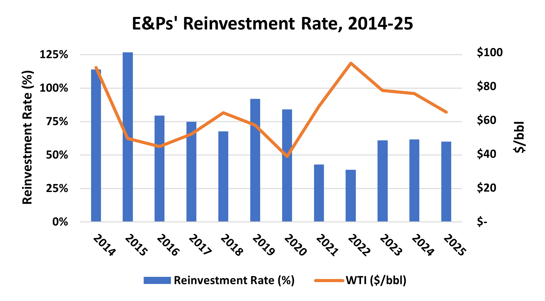 Taken together, Q4 2025 reinforced a broader structural shift in the industry — away from growth-at-all-costs and toward a more measured, cash-return-focused model. That evolution is illustrated clearly in Figure 1 below, which shows how reinvestment rates (blue bars and left axis) have converged over time to a rough 60% of cash flow, with the balance directed toward debt reduction, shareholder returns and opportunistic transactions. Even as commodity prices softened in recent years, companies resisted the urge to chase volumes, instead scaling back capital spending to preserve this framework.
